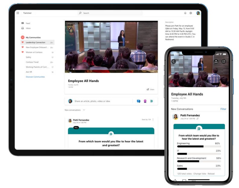 Building on the concepts of Yammer Q&A above, there’s a ton of value of this same capability as a component of a broader All Hands Live Event. Don’t be shy - catch the attention of the right subject matter expert while their attention is focused on informing and engaging. You can pose questions before the meeting starts, during the meeting with speakers and other attendees in real-time, and follow-up on-demand.