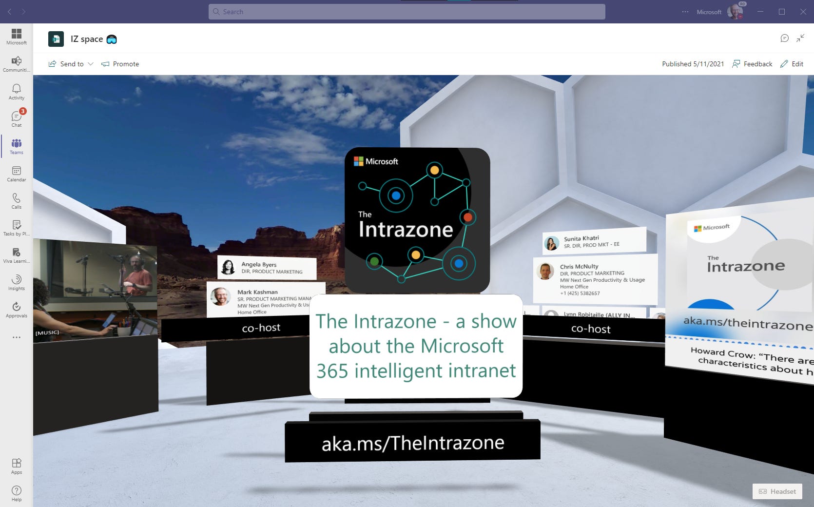 The Intrazone is a Microsoft show I co-host with Chris McNulty. We focus on the Microsoft 365 intelligent intranet. And we not only talk the talk, we walk the walk - and if we used a chalkboard (rather than Teams) - weād chalk the chalk.