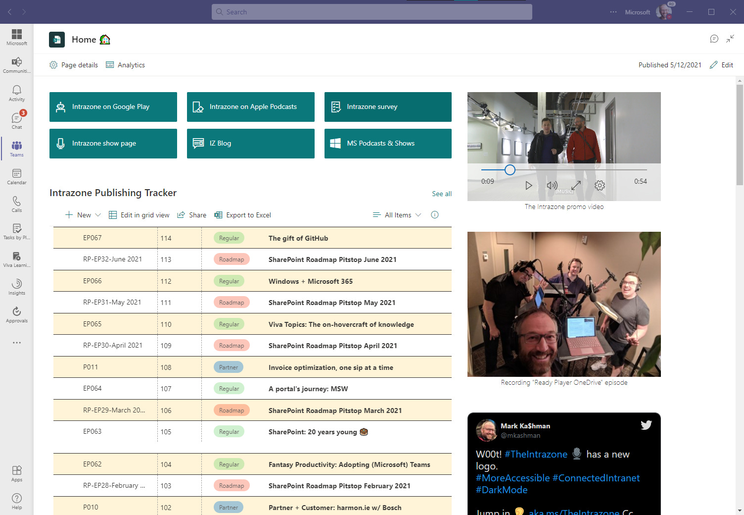 As mentioned above, I presented the āHow Microsoft uses Teams to produce The Intrazone podcast year roundā at the Teams Nation event (May 12th, 2021) to share and show how it all comes together (now on-demand):